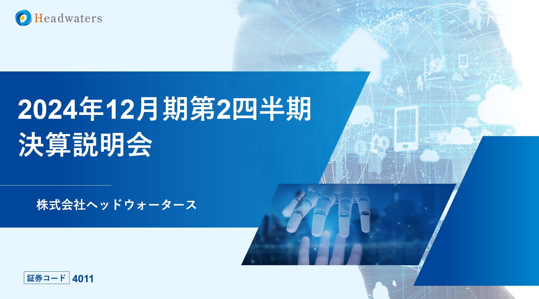 AIソリューション事業を手掛ける株式会社ヘッドウォータース(本社:東京都新宿区、代表取締役:篠田 庸介、以下「ヘッドウォータース」)は、IR 活動の⼀環として「個人投資家向け説明会」を下記の通り開催いたします。説明会では、2024年12月期第2四半期の決算内容についてご説明いたしますので、投資家皆様のご参加をお待ち申し上げております。