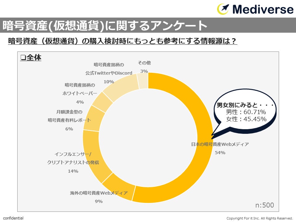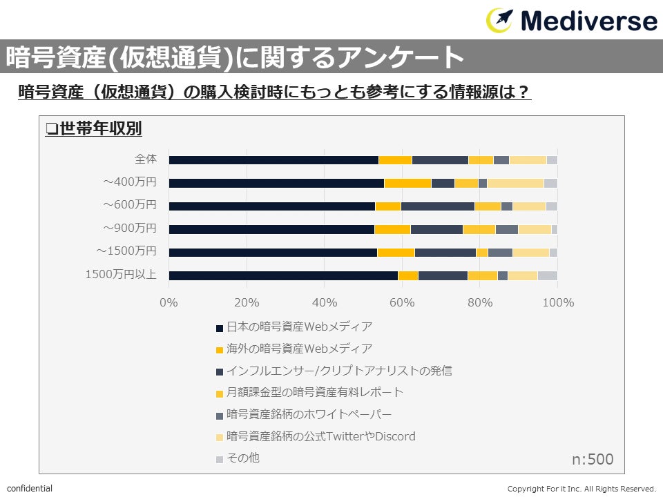 今回のアンケート調査結果では、いずれの切り口でも、日本国内においては「日本の暗号資産(仮想通貨)Webメディア」が有力情報源となっていることが判明いたしました。