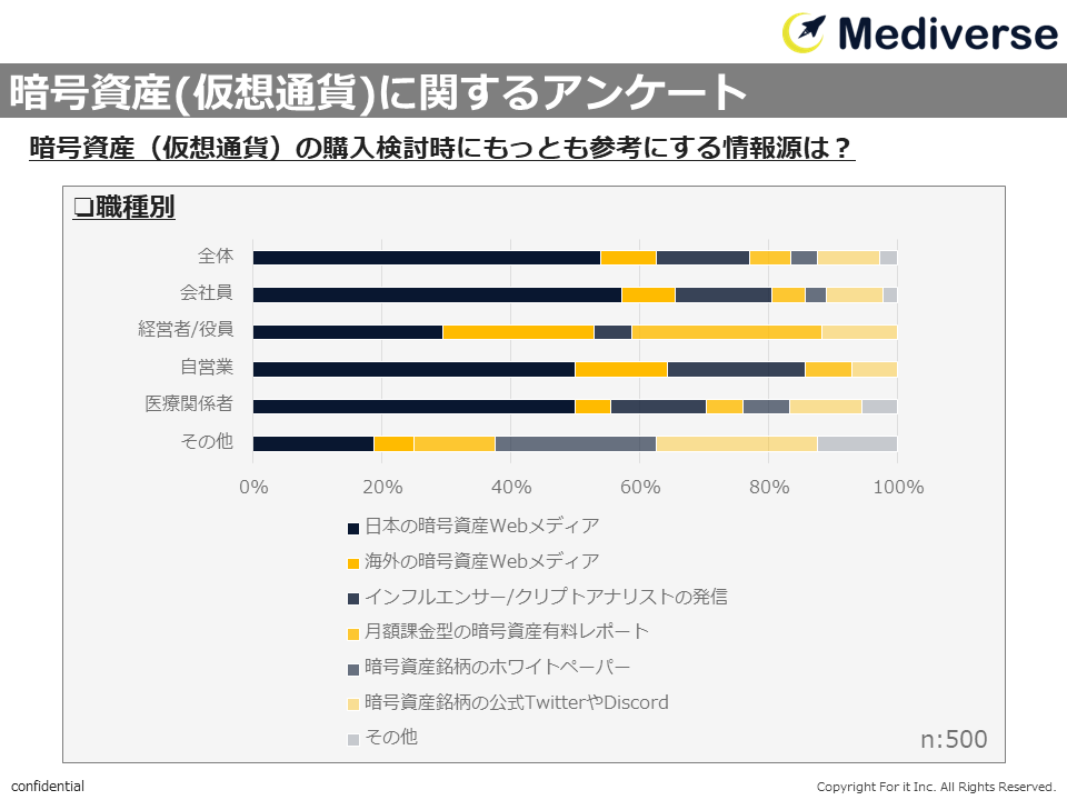 ・占拠率にバラつきはあるものの、いずれの職種も「日本の暗号資産(仮想通貨)Webメディア」が最上位