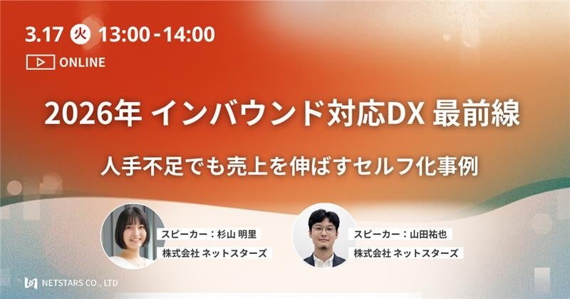 株式会社ネットスターズでは、3月17日(火)13:00より、ウェビナー「2026年 インバウンド対応DX 最前線」を開催いたします。