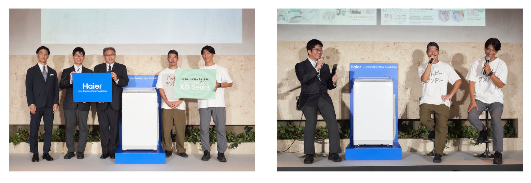 ハイアール ジャパン セールス株式会社(本社:大阪市、代表取締役社長:杜 鏡国)は、ハイアール全自動洗濯機の最上位モデルとして「XD シリーズ」10.0kg 全自動洗濯機(JW-XD100A)、9.0kg 全自動洗濯機(JW-XD90A)、8.0kg全自動洗濯機(JW-XD80A)の3機種を2024年10月中旬より全国の家電量販店、ホームセンター、GMS、WEB通販などで順次発売いたします。9月12日(木)に、「毎日の洗濯を楽しくハッピーにするための活動をする洗濯のプロ集団・洗濯ブラザーズ」の茂木貴史さん、康之さんをゲストにお迎えし、新製品発表・体験会を開催いたしました。