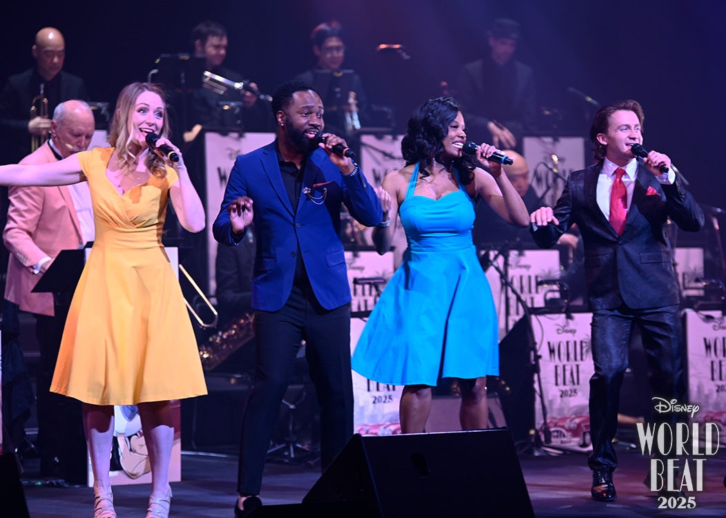 第1部の最後は、今年70周年を迎えるアメリカ・カリフォルニア州アナハイムにある「ディズニーランド・リゾート」から、アトラクションやショーに焦点を当てたスペシャル・メドレー。1950年代からテーマパーク内ではジャズのイベントが多数行われ、ウォルト・ディズニー本人もダンスを楽しんだといわれています。そんな時代のビッグバンド・ジャズの雰囲気をタイトルにした「デイトナイト・アット・ディズニーランド」より「レッツ・ダンス・アット・ディズニーランド」、日本でもお馴染みの「イッツ・ア・スモールワールド」より「小さな世界」、「ホーンテッドマンション」より「グリム・グリニング・ゴースト」、「魅惑のチキルーム」より「チキ・チキ・チキルーム」の4曲はシンガーたちの歌とダンスとともに。