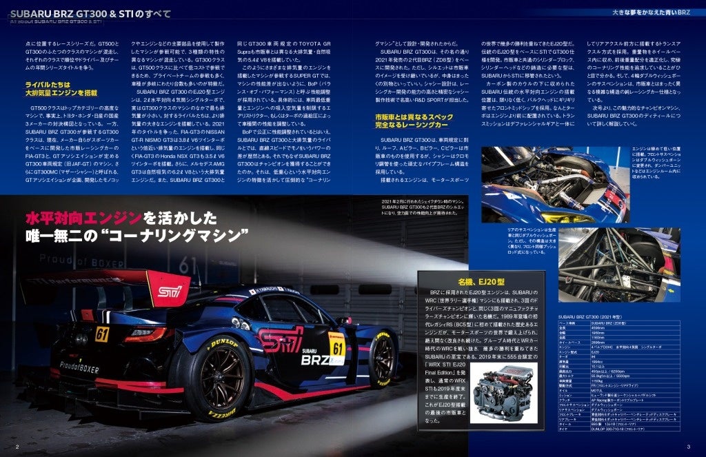 「SUBARU BRZ GT300」のメカニズムや性能などを詳しく解説。また、ドライバーや開発担当者などへのインタビューを通じて、レースでの裏話や開発秘話も紹介します。