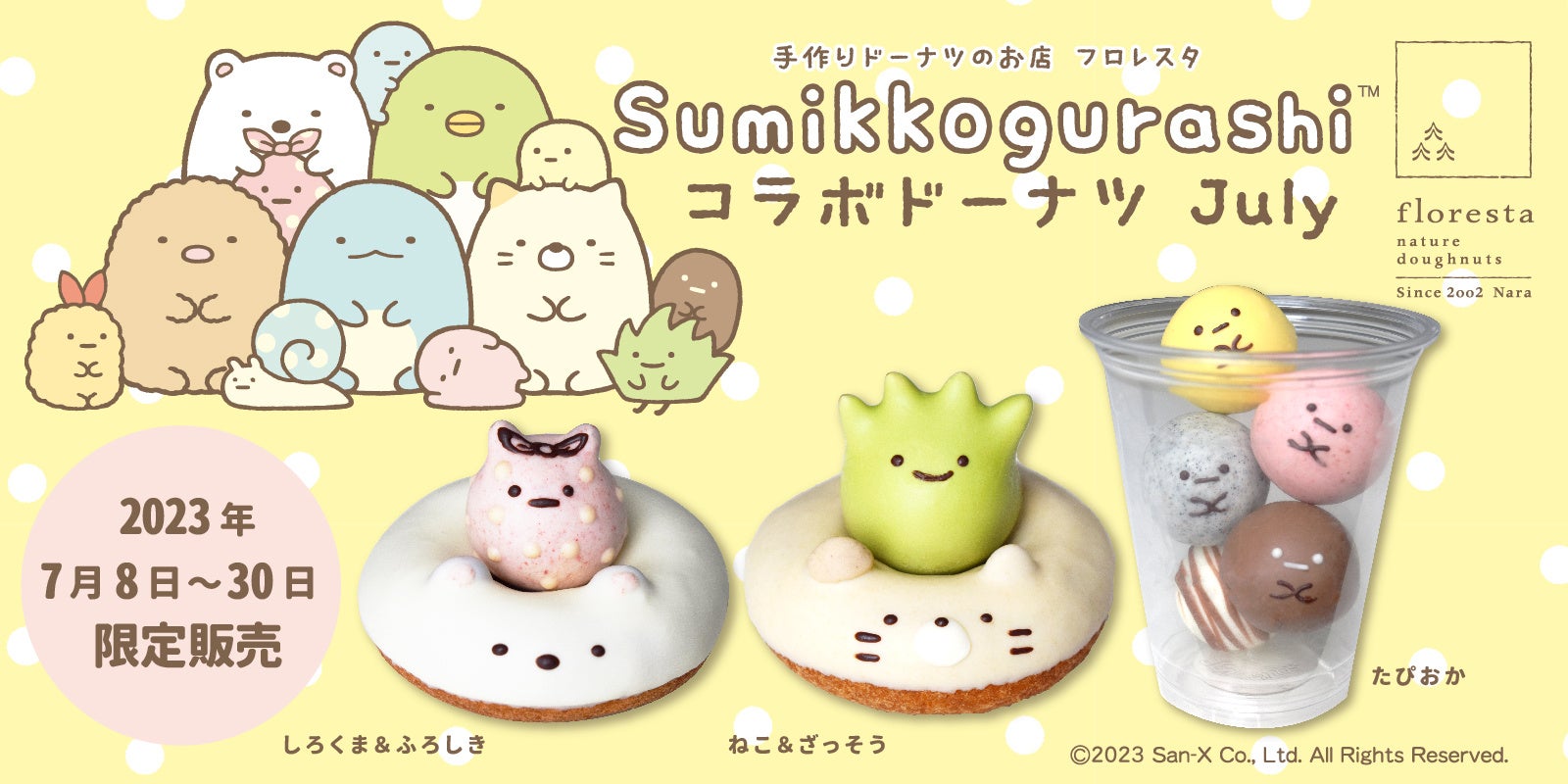 自然な素材にこだわるドーナツ専門店「フロレスタ」に、昨年大好評だった人気キャラクター「すみっコぐらしコラボドーナツ」が7月と8月の2ヶ月連続で登場します。