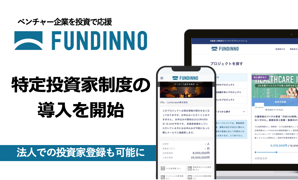 FUNDINNO 特定投資家制度の導入を開始「法人」での投資家登録も可能に
