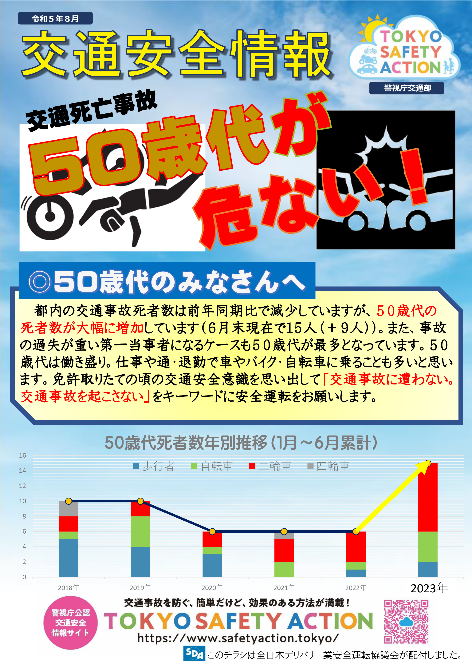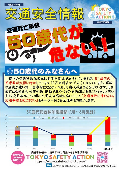 本取組は、2023年上半期の東京都内における交通死亡事故において、50歳代が当事者となって命を落とすケースが特に多くなっている状況であることから、家庭や職場等において交通安全に関して話し合うきっかけとしていただき、交通安全の意識を一層高めていただくためのものです。