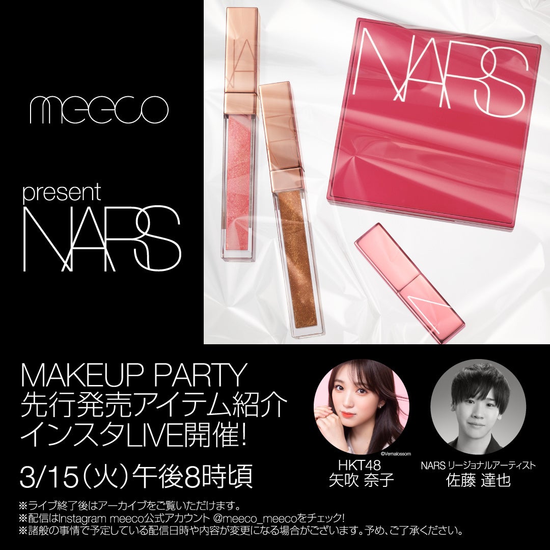 HKT 48 矢吹奈子 meets NARS!! 3月15日(火)20時~ 春のメーキャップをテーマにLIVE配信。