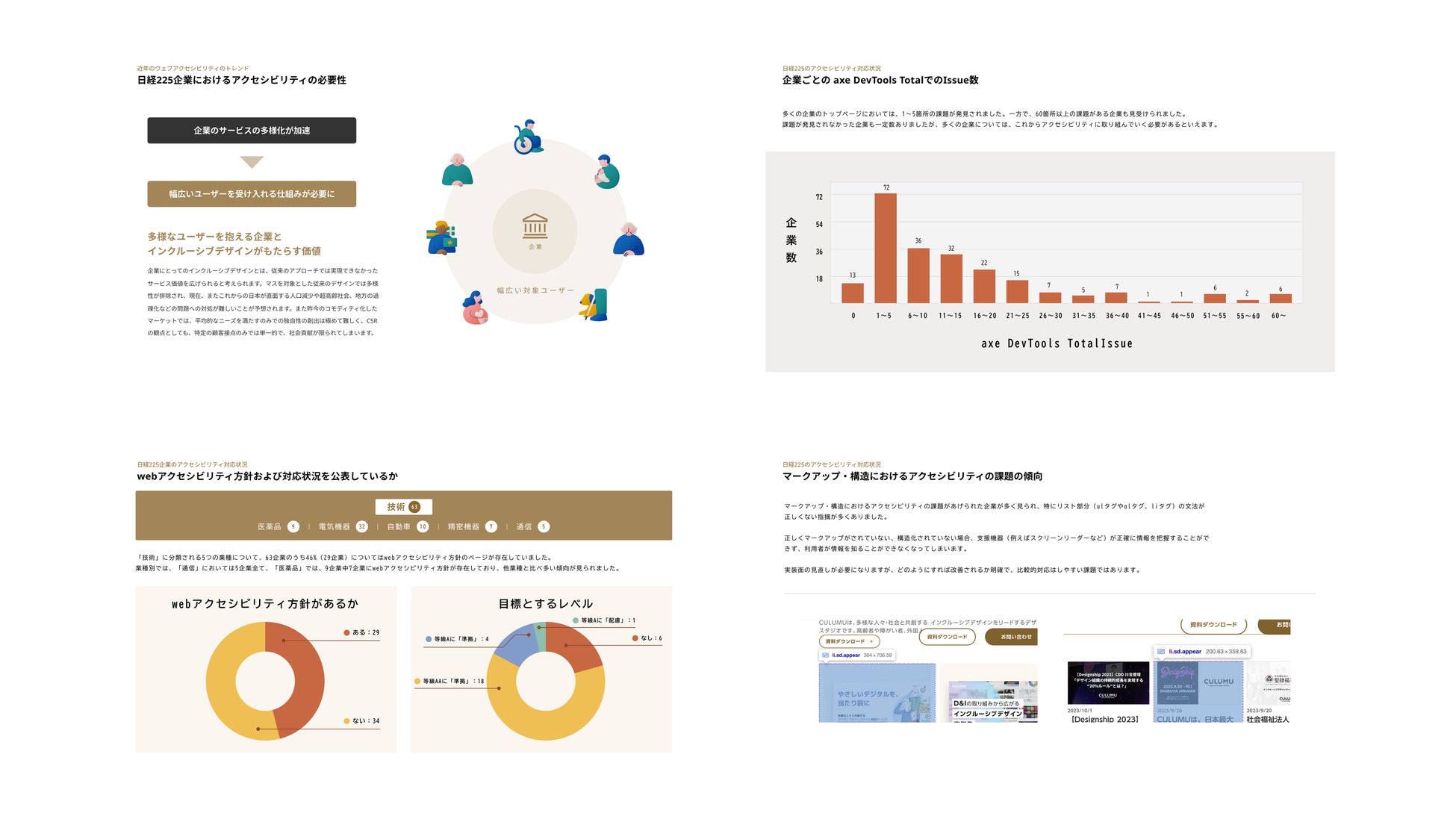 日経225企業を対象に実施されたアクセシビリティ対応状況の調査結果をもとに、現状の対応レベルやアクセシビリティに注力している企業の取り組みについて解説します。