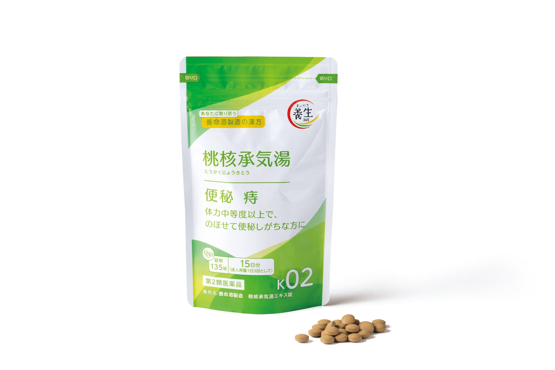 養命酒製造 漢方製剤シリーズ第2弾、体力が比較的ある中等度以上で、年齢とともに腸の動きが弱まり、便秘・痔がちの方のための漢方「桃核承気湯(とうかくじょうきとう)」が新登場