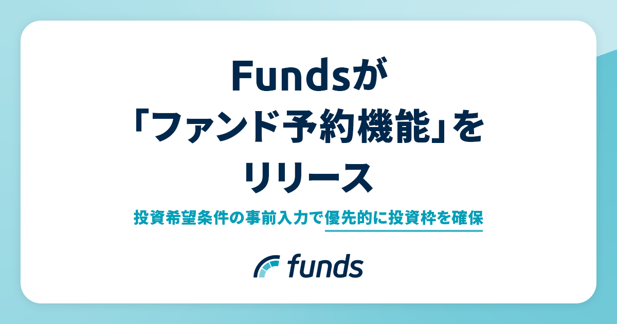 Fundsが業界初*「ファンド予約機能」をリリース〜事前の希望条件入力でファンドをマッチング〜