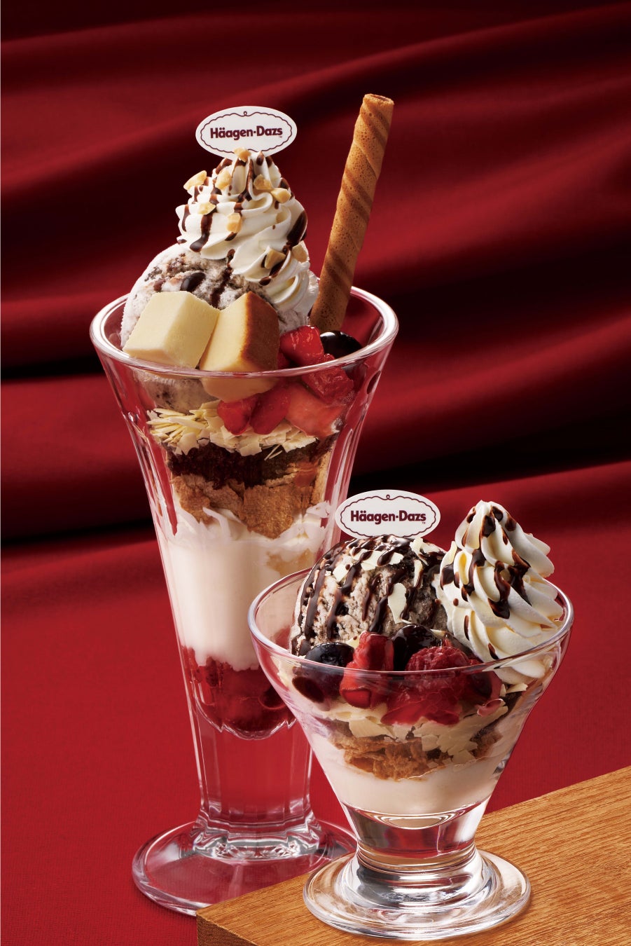 デザートには、ハーゲンダッツのアイスクリームを使用した「ハーゲンダッツ・クッキー&クリームアイスクリームとチーズケーキのご褒美パフェ」を含む2品をご用意し、計7品を冬フェア限定で販売いたします。