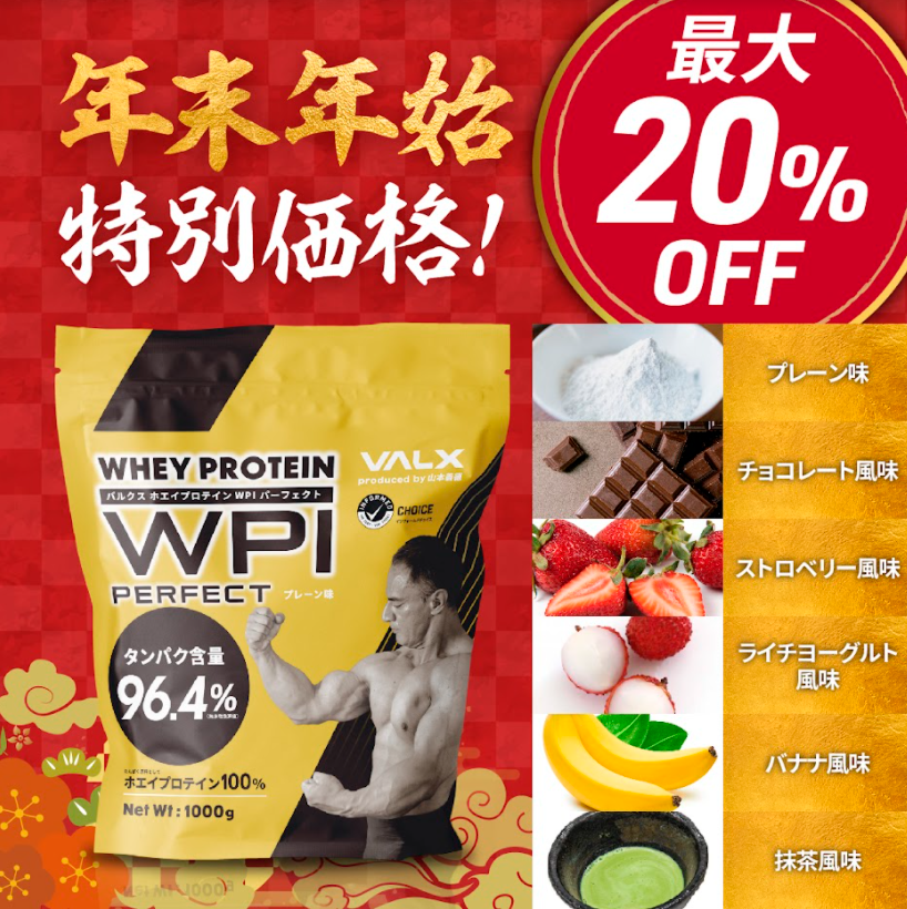 【目玉商品】タンパク質含量90%以上VALXホエイプロテインWPIパーフェクトが最大20%OFF