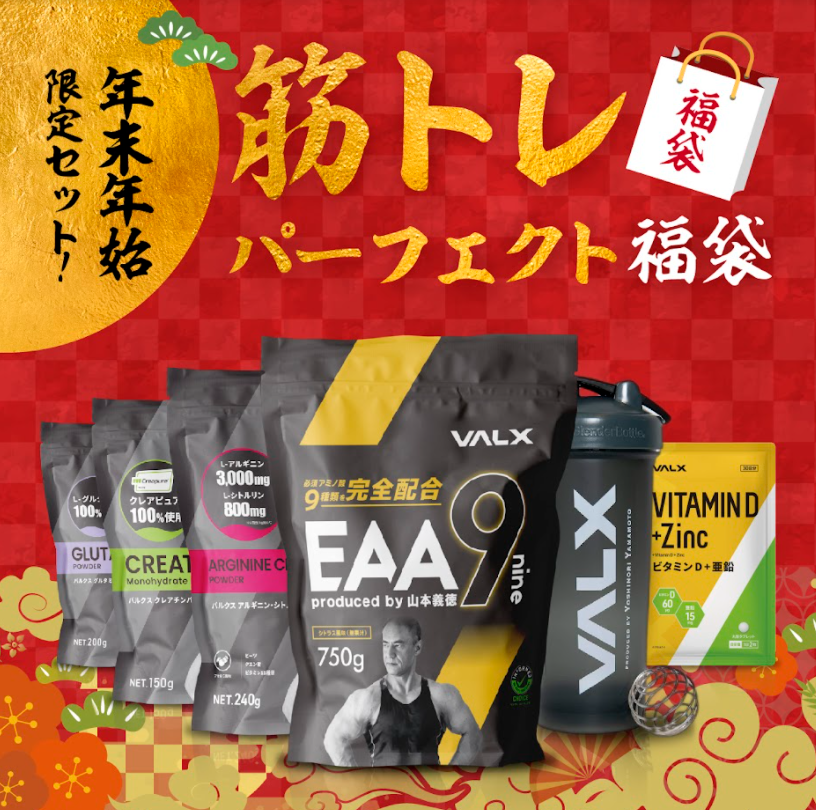 年末年始、ついつい身体を甘やかしてしまいがちな時期だからこそ、お買い得な福袋でVALXのEAA9やプロテインをしっかりそろえ、いつもの生活を維持しましょう。