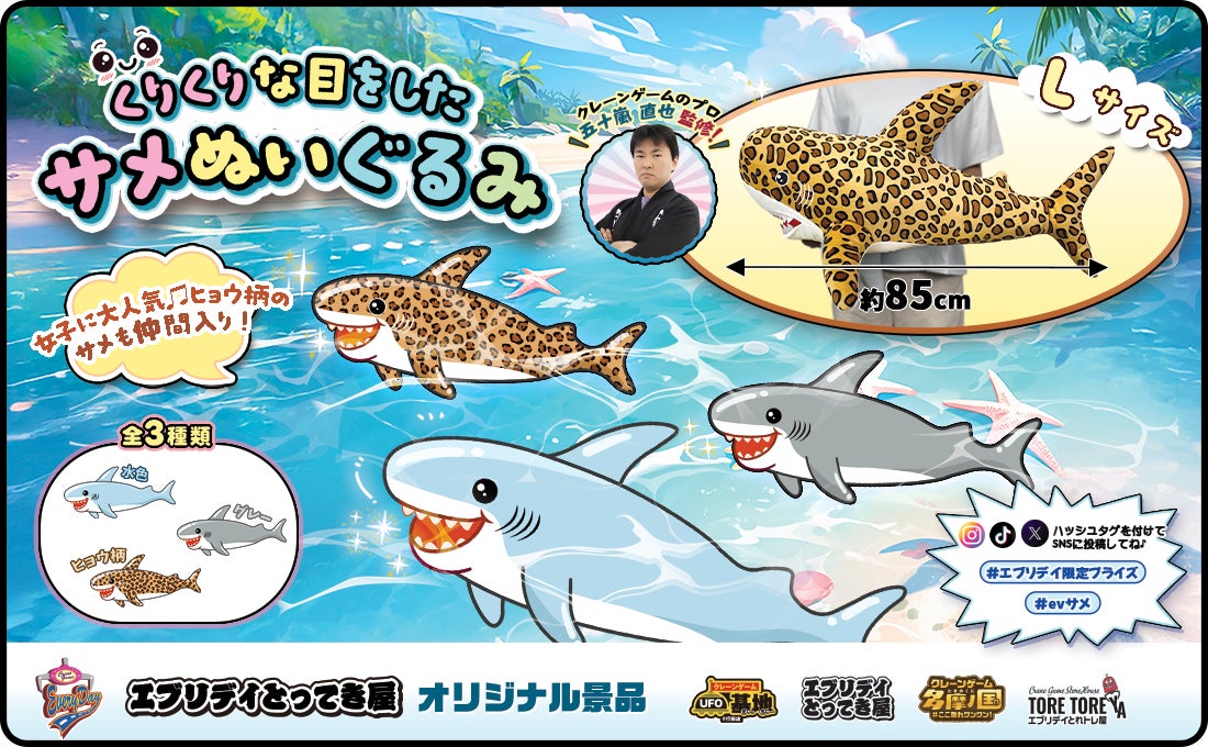 全長85cmのビッグサイズ!新オリジナル景品「くりくりな目をしたサメぬいぐるみ」エブリデイ限定で登場!