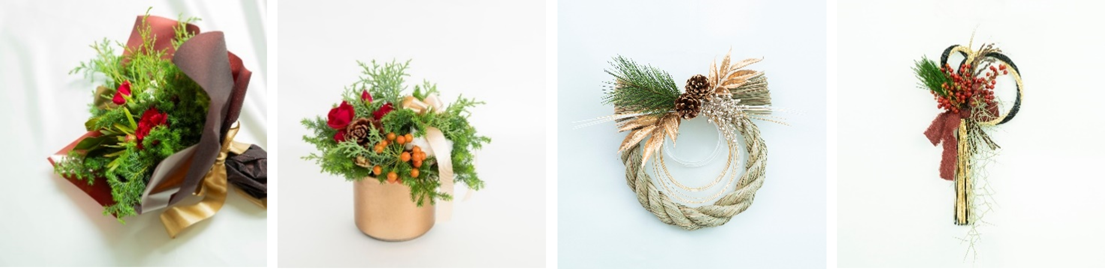 ▪グリーンたっぷりのクリスマスミニブーケとアレンジの他 昨年好評をいただいた、しめ縄や水引のお正月飾り