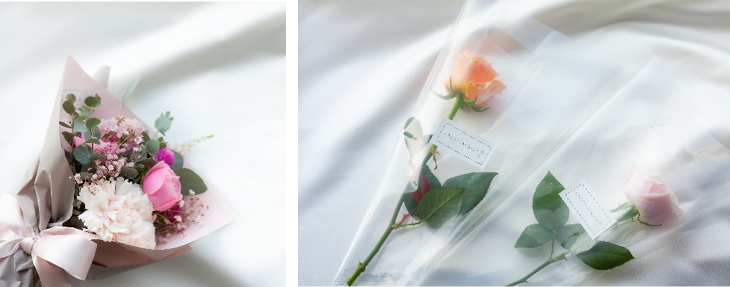 生花は1輪からオーダーアレンジメントまでご購入可能です。