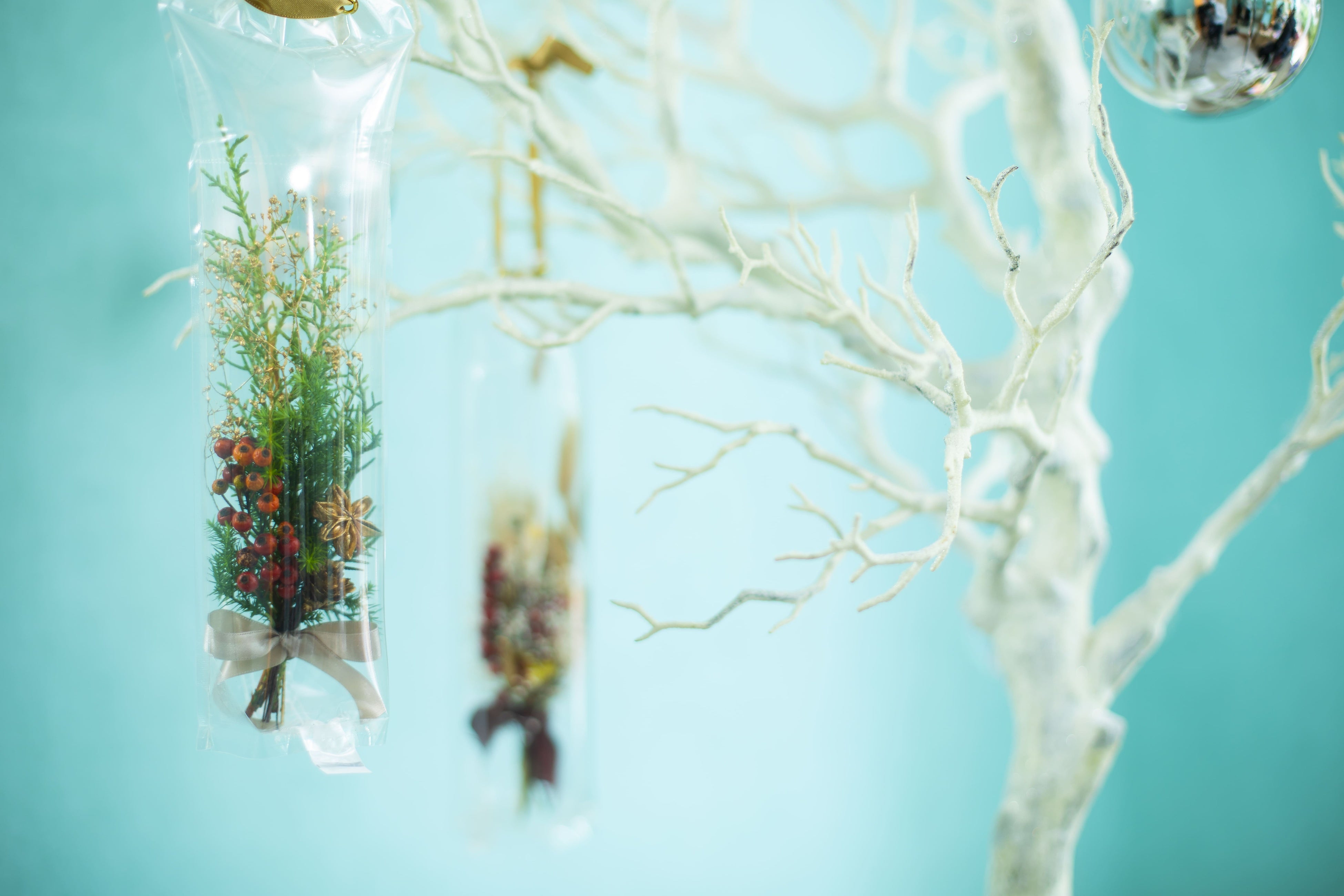 緑葉のグリーンで仕上げて見た目でも、香りでもクリスマスを楽しめます。