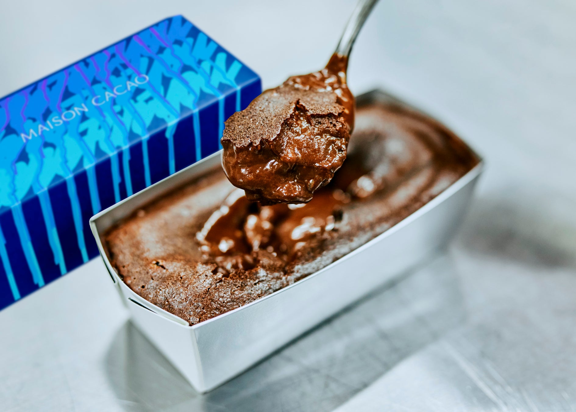 使用するのはコロンビアの自社管理農園で収穫した新鮮なカカオのみ。レストランのデザートになりうるほどみずみずしい「半生」の食感。本来は焼き菓子であるガトーショコラの概念をくつがえす生ガトーショコラです。2024年の限定パッケージで登場します。