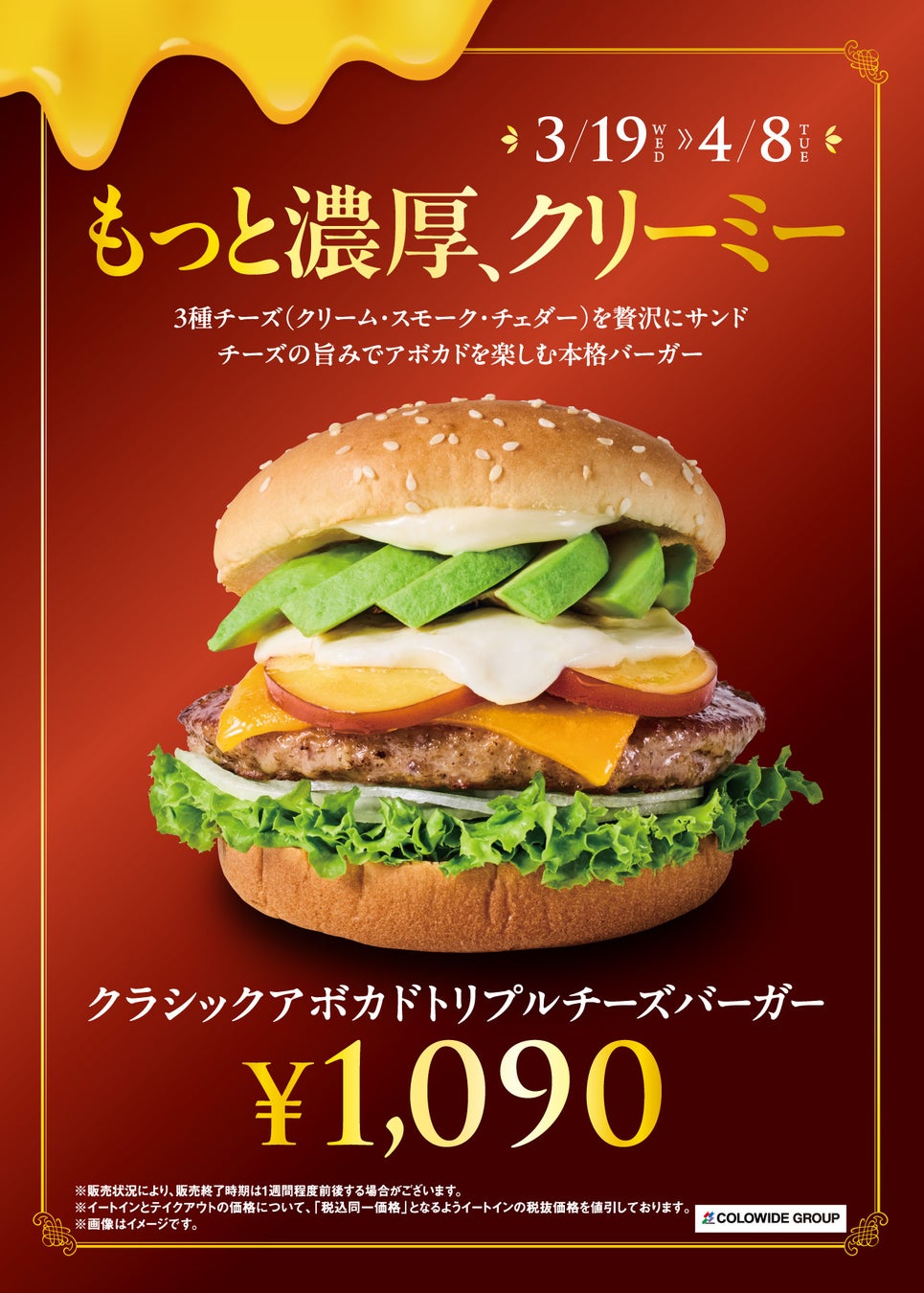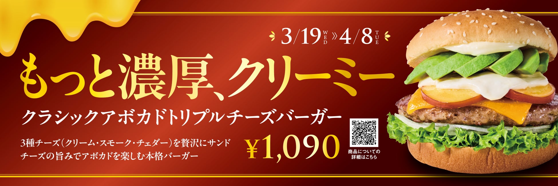 クラシックアボカドトリプルチーズバーガー 2025年3月19日(水)~4月8日(火)3週間限定発売
