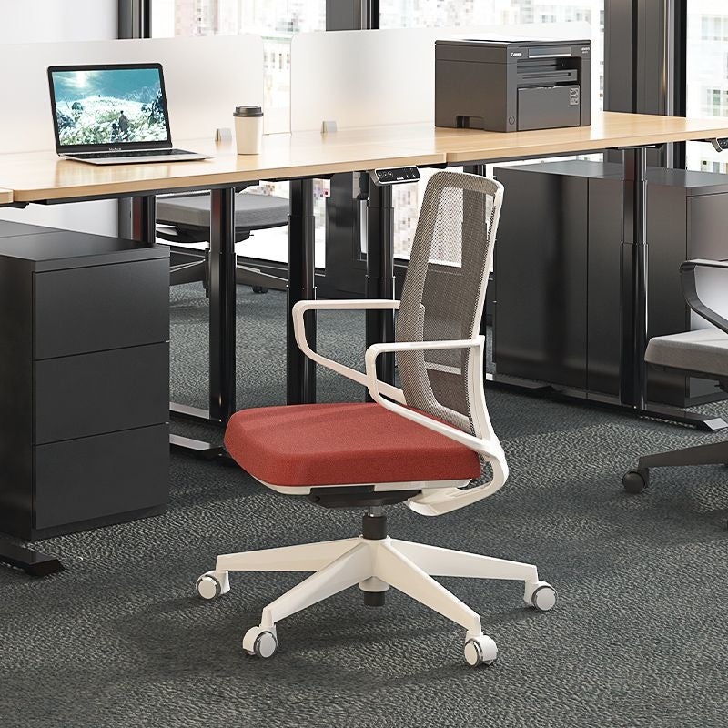 - 昇降デスクの昇降に合わせてオフィスチェアを調整し、最適な作業姿勢に変える