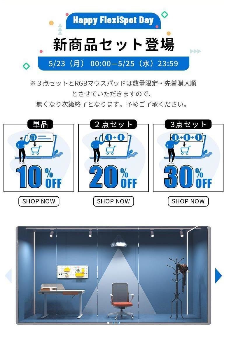3点セット⇨30%OFF - 特設URL:https://flexispot.jp/525fsday