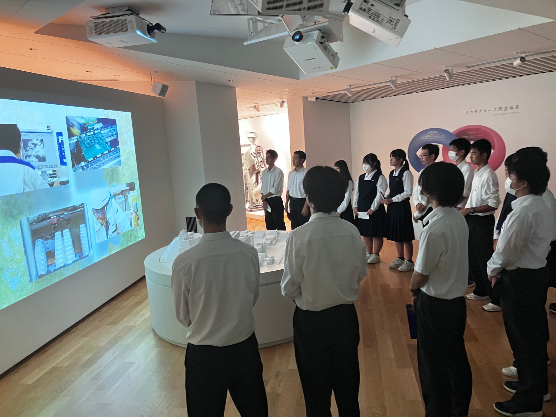 今回のフィールドワークでは、会社紹介に加え、ショールーム「ミウラ愛ランド」の見学、グループワークを実施し、弊社の事業やSDGs・脱炭素社会に向けた取り組みなどを学習しました。生徒たちは、実際のミウラ製品を目にしながら、興味津々な様子で見学されていました。