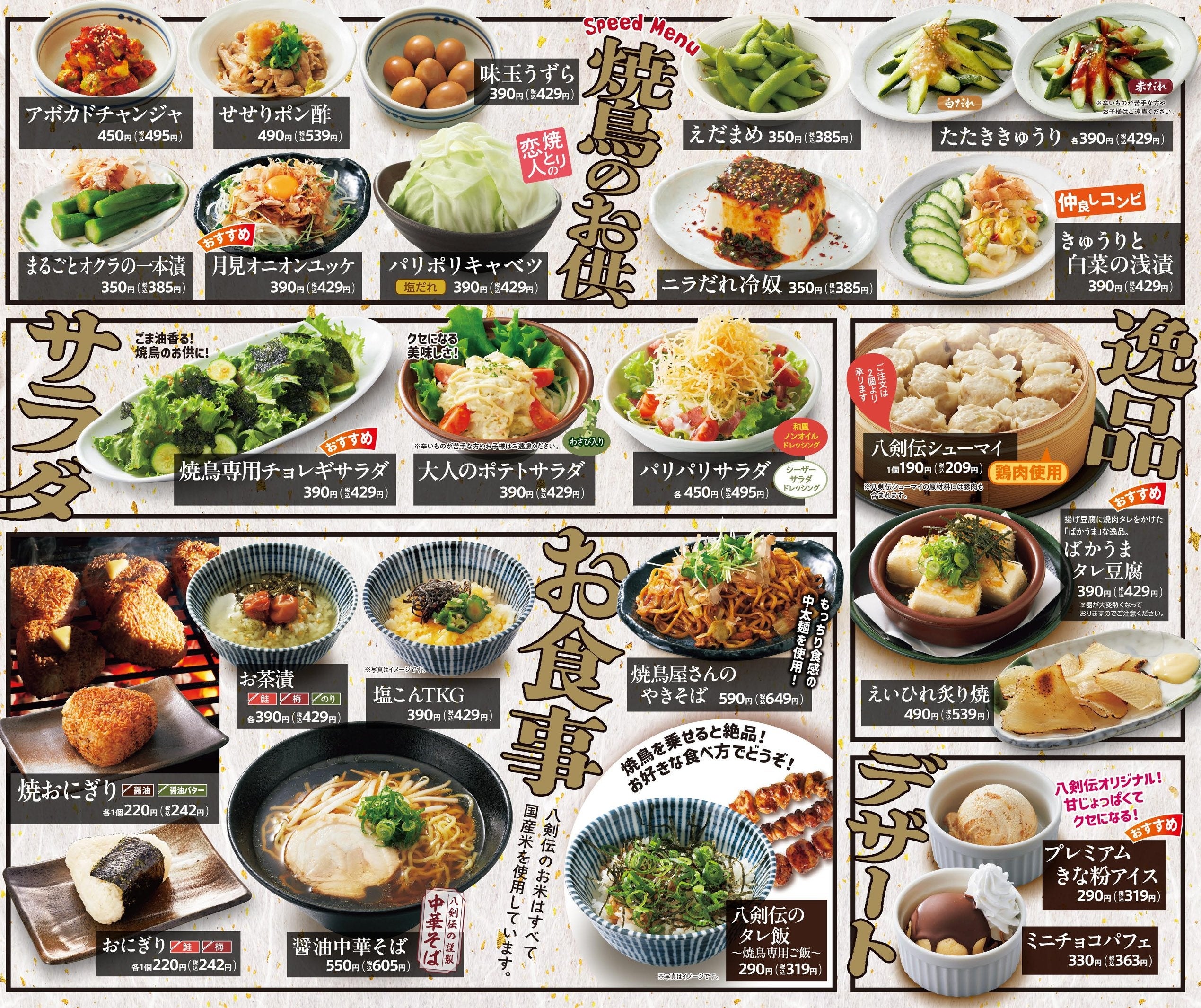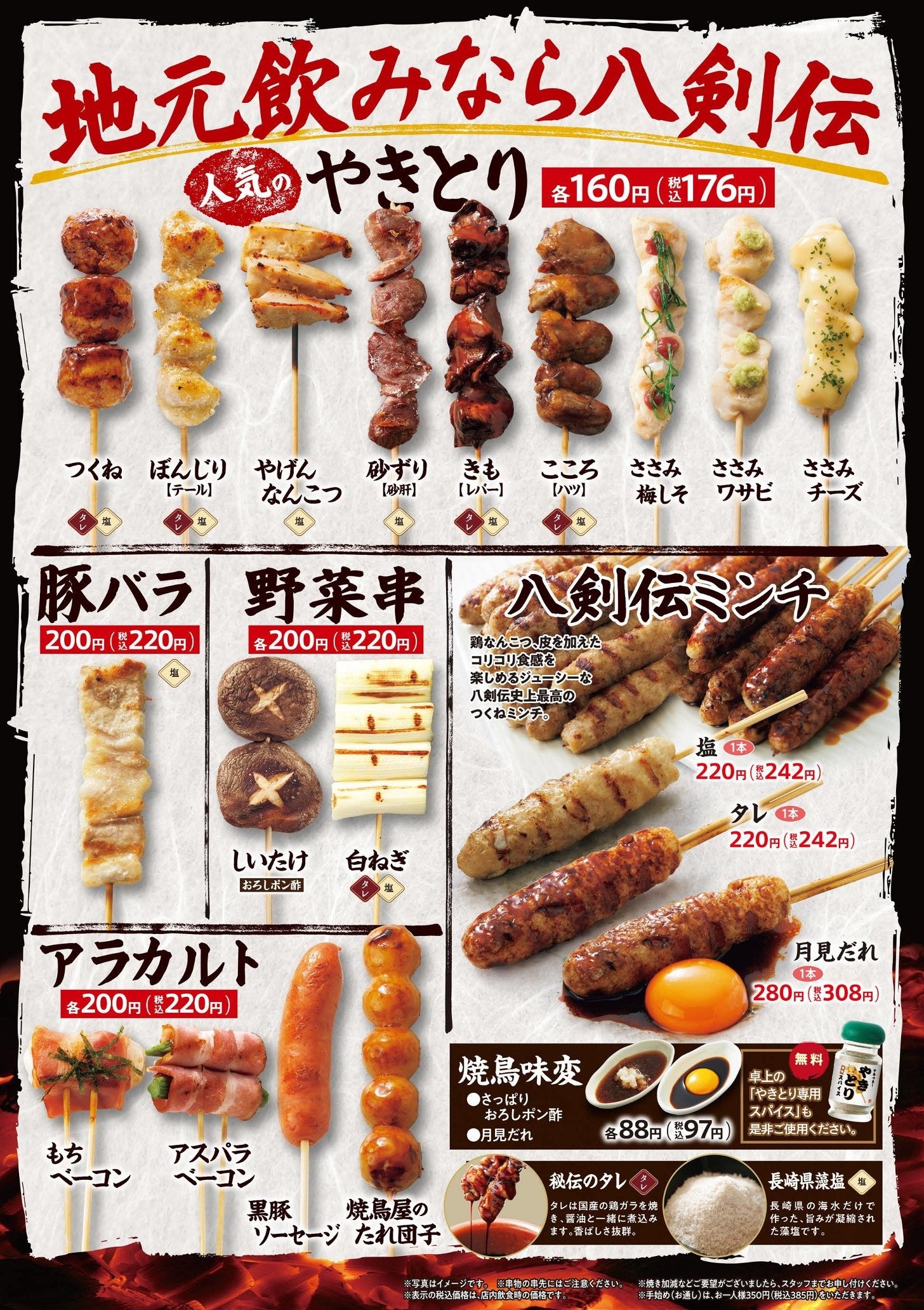 【八剣伝】3月26日(木)よりグランドメニュー刷新!4種の炭火焼鳥がお値段そのまま1.5倍に