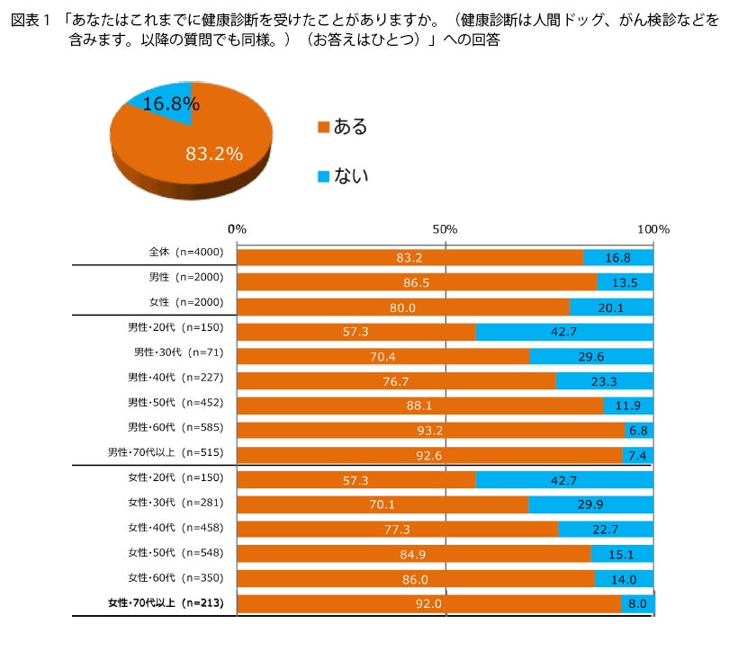 まず、これまでに健康診断を受けたことがあるかを聞いたところ(図表1)、全体では83.2%が「ある」と回答しました。