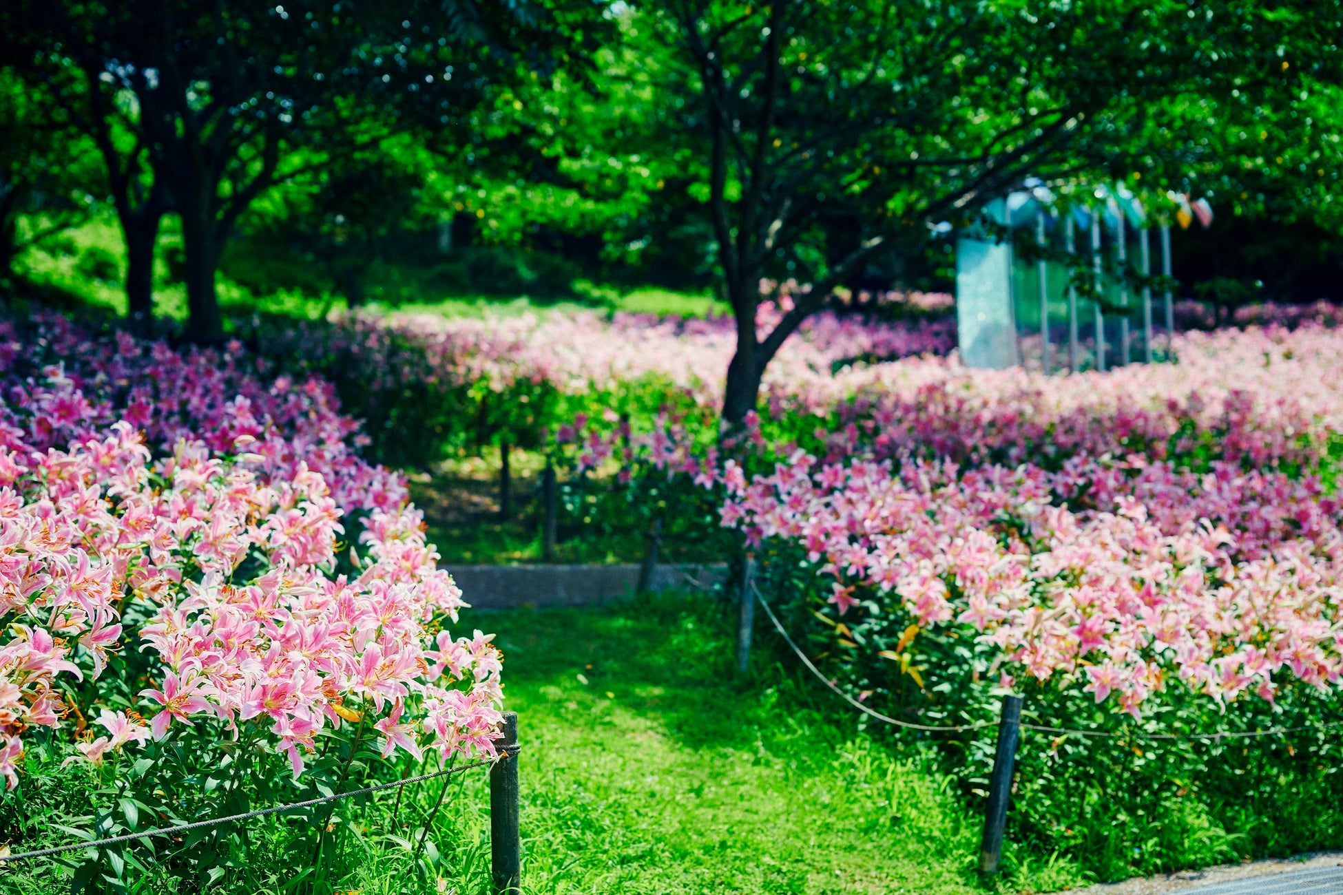 撮影スポットで人気の黄色、ピンクに一面が彩る初夏のユリ花畑。山上のリゾート”神戸布引ハーブ園”では「ユリ(オリエンタルリリー)」が見ごろです。園内各所で”ユリのある風景”もお楽しみいただけます