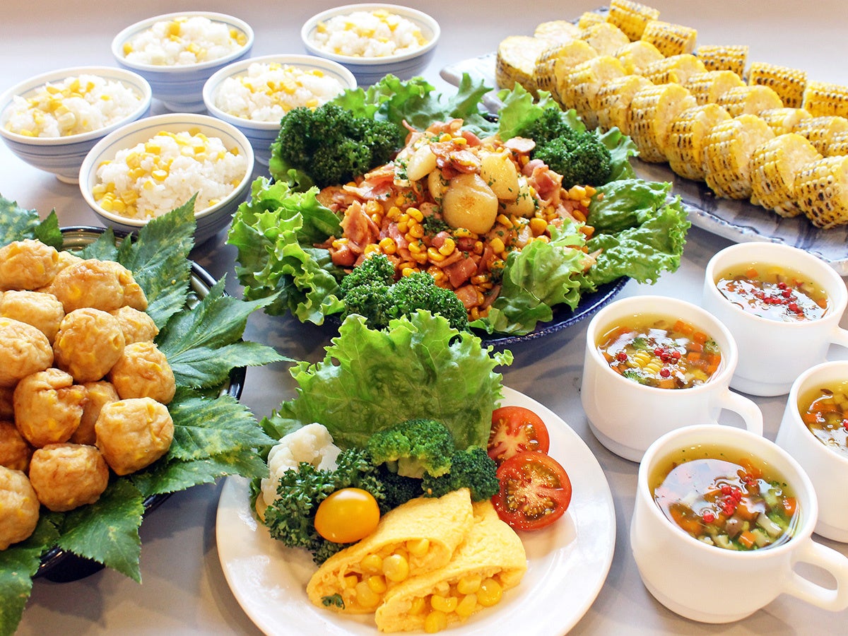 期間中、通常の夕食バイキングメニューのほかにいろいろなとうもろこしを使用したとうもろこし料理を