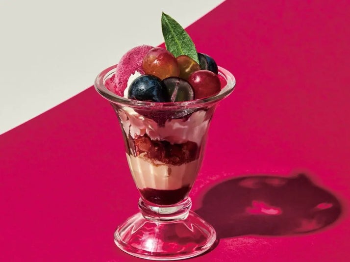 グラスの中にぎゅっと詰め込んだ、秋の葡萄の彩り。ミルクアイスと巨峰シャーベットがとろけ合い、カシスソースの酸味と紅茶ゼリーの香りが、余韻まで爽やかに包み込みます。一粒一粒に旬の美が宿る、期間限定のプレミアムパフェです。