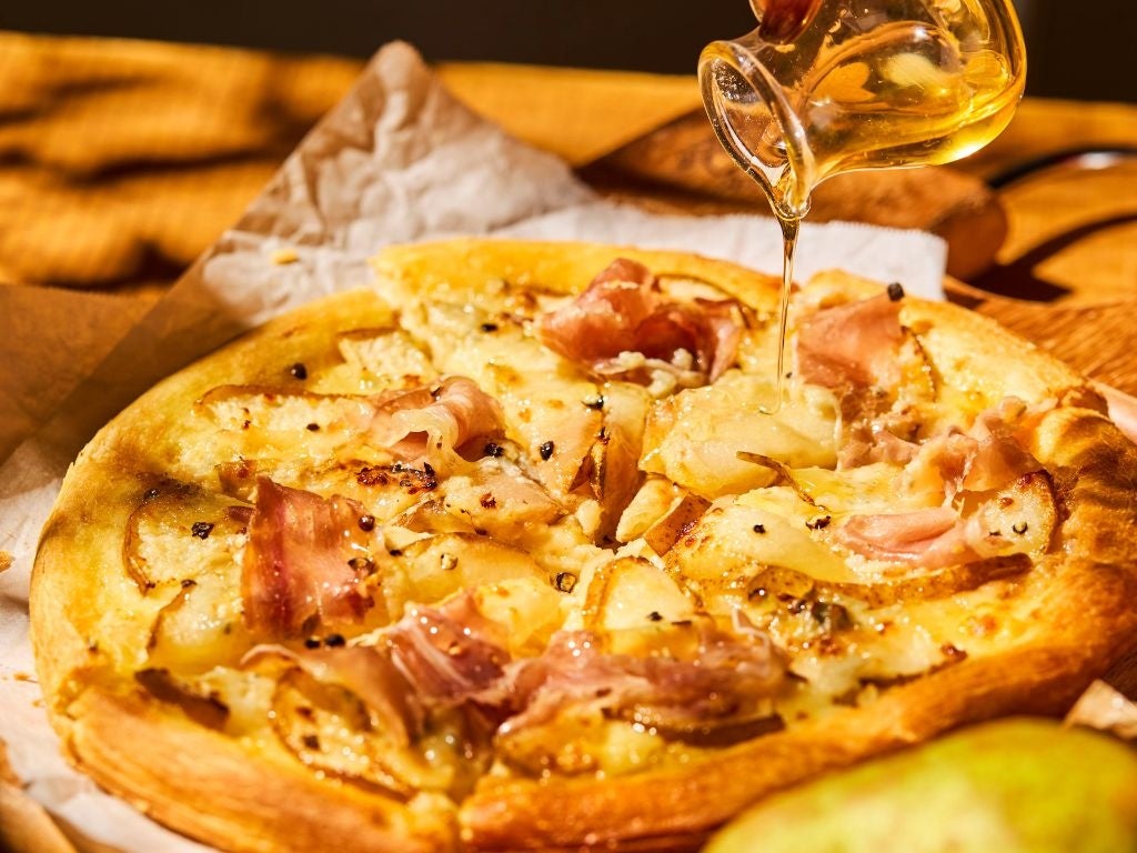 ラ・フランスの上品な甘みと、生ハムの旨味、ゴルゴンゾーラの奥深いコクが三位一体となった、フルーツパーラーならではの“甘じょっぱい”季節限定ピザです。仕上げにはちみつをとろりとかけることで、より豊かな風味の変化をお楽しみいただけます。ランチタイムを華やかに彩る贅沢な一皿です。
