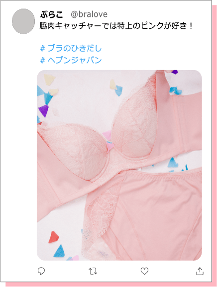SNSで写真をシェアしたいけど自分の下着を載せるのは恥ずかしいときや、お気に入りのブラの写真を載せたいけど上手に写真を撮ることが難しいとき。まるで“ひきだし”にしまっているお気に入りのブラを取り出すようにご利用いただけます。