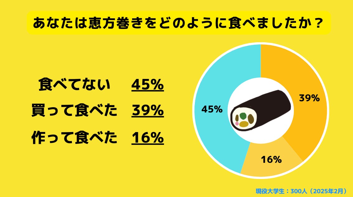 【Z世代のホンネ調査】大学生の過半数が恵方巻きを「食べた」と回答。恵方巻きの大量処分に関しては「もったいない」「予約制にすべき」との声も。