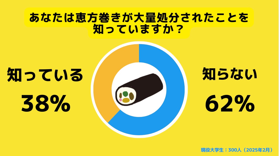 ■過半数の大学生が恵方巻きが大量処分されたことを「知らない」と回答。