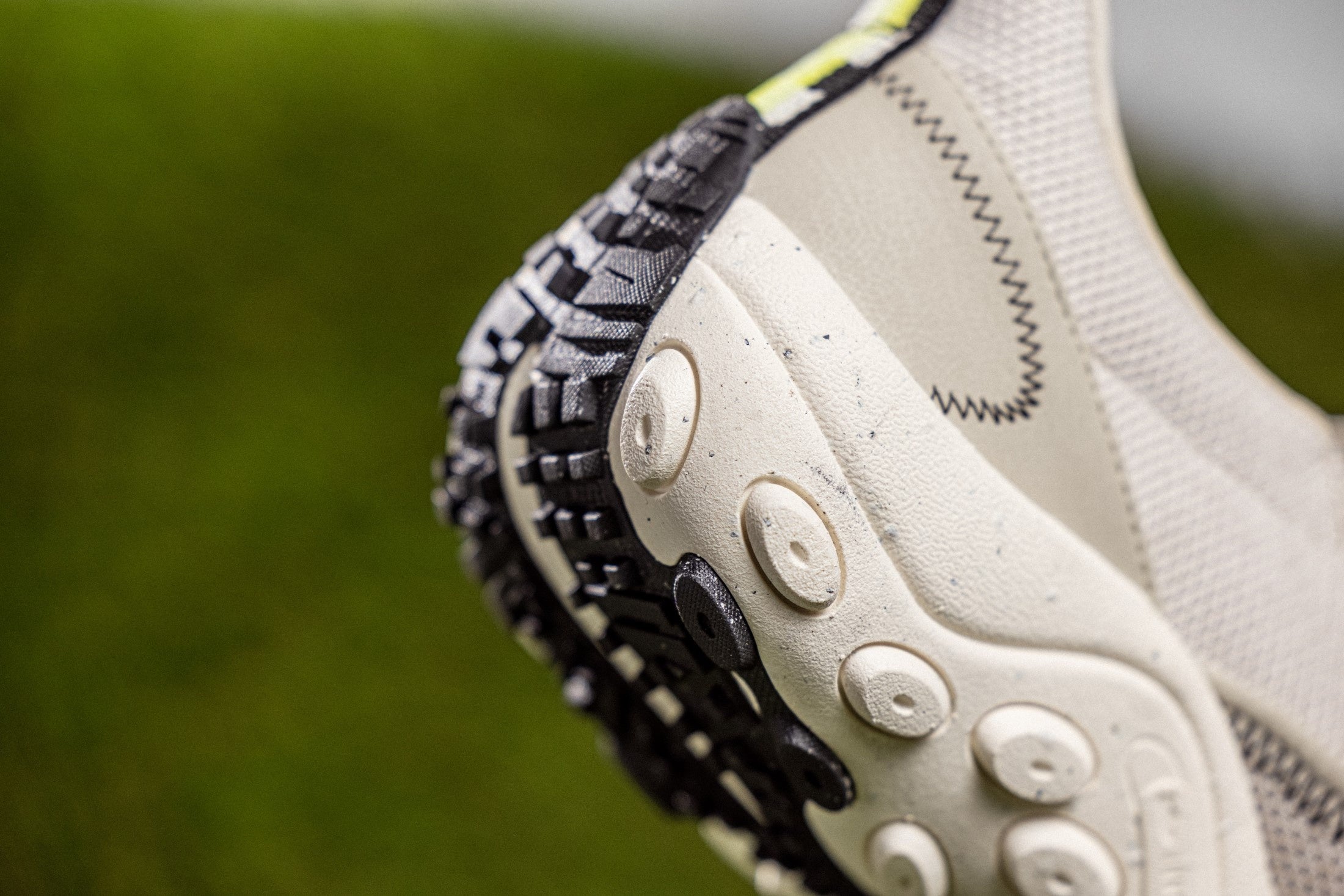 最も注目すべき点は、アッパー構造全体(アッパー、ライニング、ウェビング、フットベッドまで)を100%リサイクルポリエステルで構築し、ジャングルモック史上最高レベルのサステナブル化を実現しました。「2025年までにすべての商品に対してサステナブル素材を活用する」ことを目標に掲げるMERRELLにおいて、ブランドアイコンの大幅なアップデートは大きな意味を持ちます。また、ミッドソールにはトレラン・ハイキングなどのパフォーマンスシューズに搭載する「FLOATPRO™」ミッドソールを初採用。超軽量且つクッション性に優れたパフォーマンスソールが、従来以上の快適性を発揮し、形状記憶のように足裏にフィットする感覚を最大化します。更に20%のリサイクルEVAを配合し、サステナブルにも配慮した構造となっています。そして、アウトソールにはラバー面積を必要最低限までミニマイズさせ、15%のリサイクルラバーを配合した最新設計のアウトソールを採用。シューズ全体のサステナブル化と共に構造の見直しを丁寧に実施することで、従来のJUNGLE MOCに対して、クッション性の向上と圧倒的な軽量化の両立に成功。“唯一無二の履き心地”がさらなる進化を遂げました。