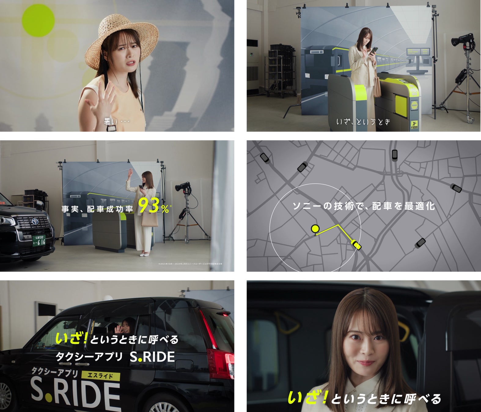 「夏のいざ!にS.RIDE」篇は、雨の日や暑い夏の日、電車が遅れてしまった時など、タクシーに乗りたくなる様々なシチュエーションで撮影。配車成功率93%で、いざ!というときに呼べる「S.RIDE」の便利さを感じていただける内容です。