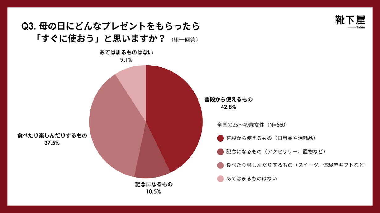 Q3. 母の日にどんなプレゼントをもらったら「すぐに使おう」と思いますか?(単一回答)
