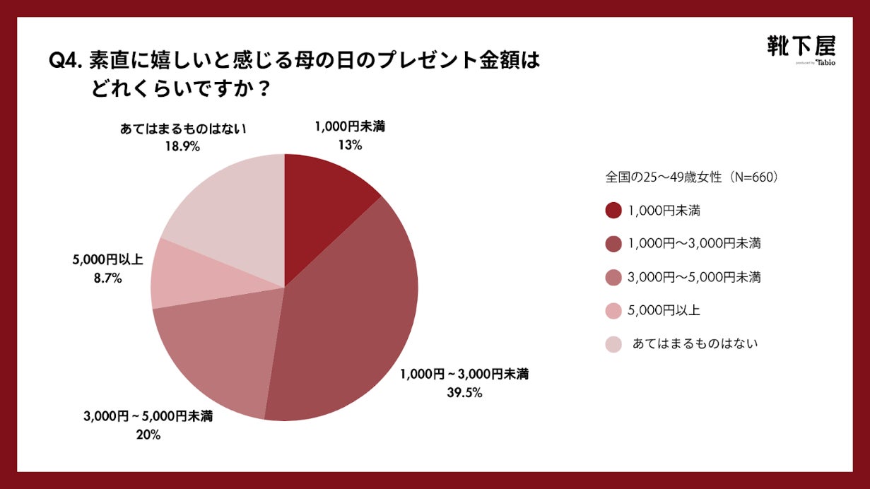 Q4. 素直に嬉しいと感じる母の日のプレゼント金額はどれくらいですか?