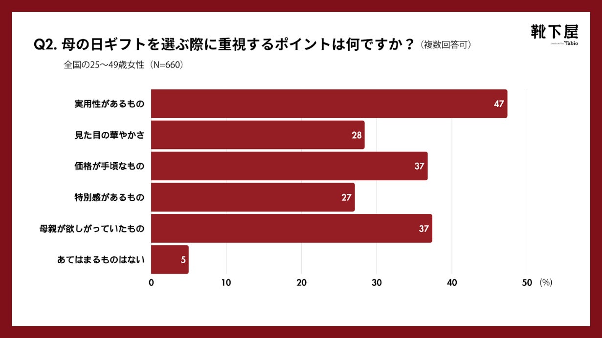 Q2. 母の日ギフトを選ぶ際に重視するポイントは何ですか?(複数回答可)