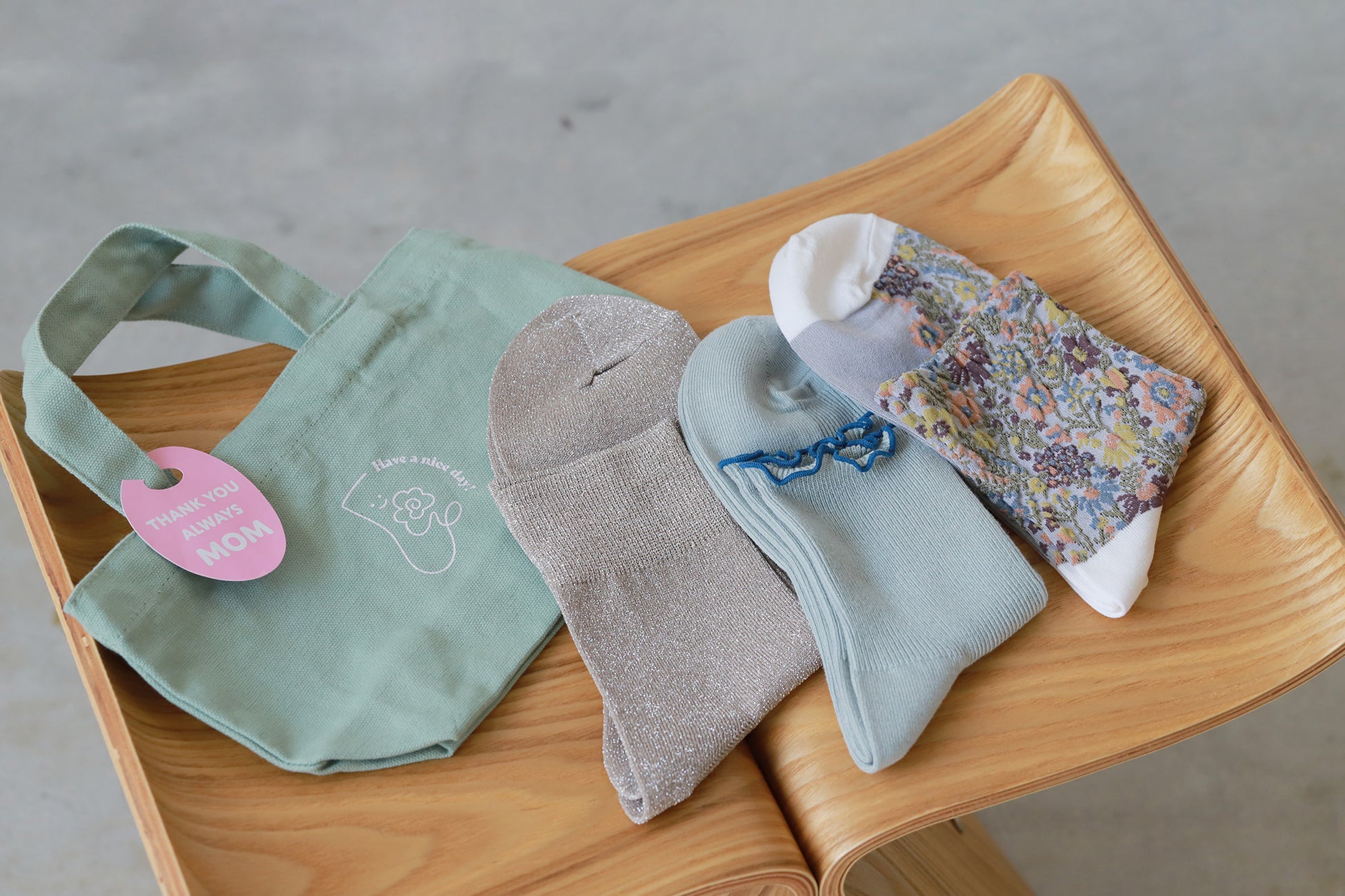 ・オンライン限定:「靴下3足+ミニトート」の母の日ギフトセット全4種 3,245~3,410円 (税込)