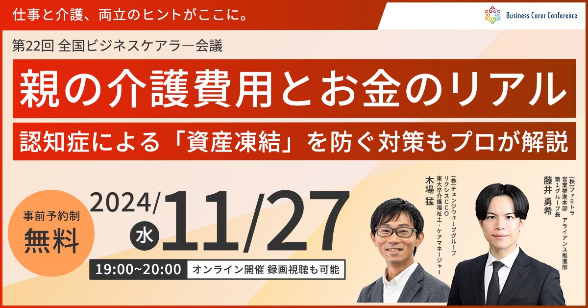 11月27日(水)現役ビジネスパーソンと各分野のプロが結集するオンラインセミナー『全国ビジネスケアラー会議 仕事と介護、両立のヒントがここに。』開催のお知らせ