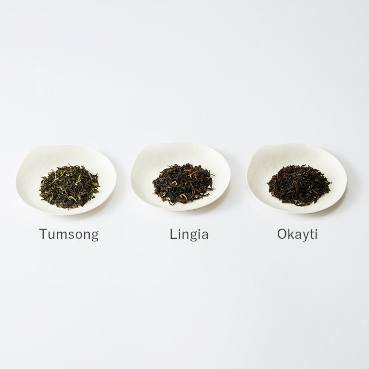 世界三大紅茶の一つでもあるダージリンですが、茶園やシーズン毎に様々な個性があります。当商品は異なる3つのシングルオリジンのダージリン茶葉を選定いたしました。いずれもクオリティーシーズンに収穫された茶葉を使用しており、タムソン茶園のファーストフラッシュはグリーンな香りに重なるフラワリーな香りを、リンギア茶園とオカイティ茶園はセカンドフラッシュですが、それぞれ違った味わいを楽しむことができます。この商品を通してダージリン紅茶の奥行の広さを感じていただけたらと思います。また、それぞれの紅茶の個性に合わせてご紹介しています「和菓子×ダージリン」のペアリングもおすすめです。