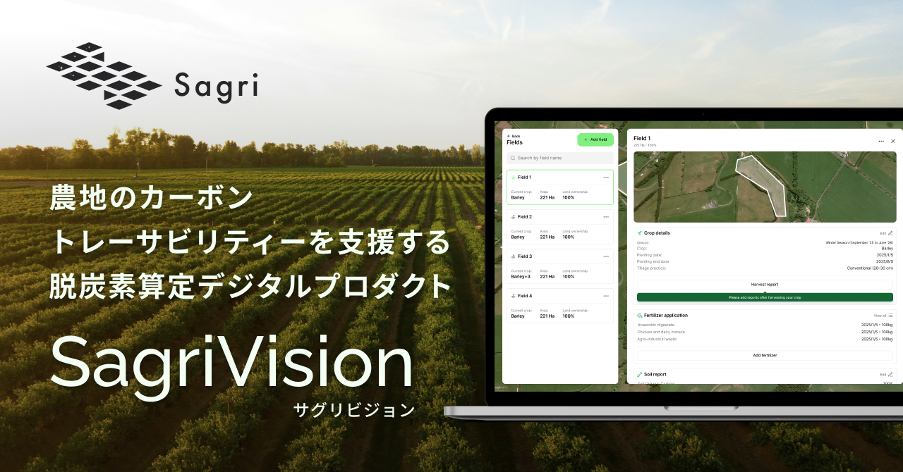 サグリ株式会社(本社:兵庫県丹波市、代表取締役社長:坪井 俊輔、以下「サグリ」)は、農地のカーボントレーサビリティを支援する「脱炭素算定デジタルプロダクト『SagriVision』」を本日リリースしたことをお知らせします。