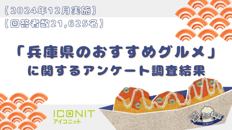 株式会社メディアシークが提供する累計3,600万DL超スマートフォンアプリ「QR/バーコードリーダー・アイコニット」内で、アプリユーザーを対象に毎日実施しているアンケート「アイコニット・リサーチ」において、「兵庫県のおすすめグルメ」に関するアンケートを21,625名に対して2024年12月14日に実施いたしました。