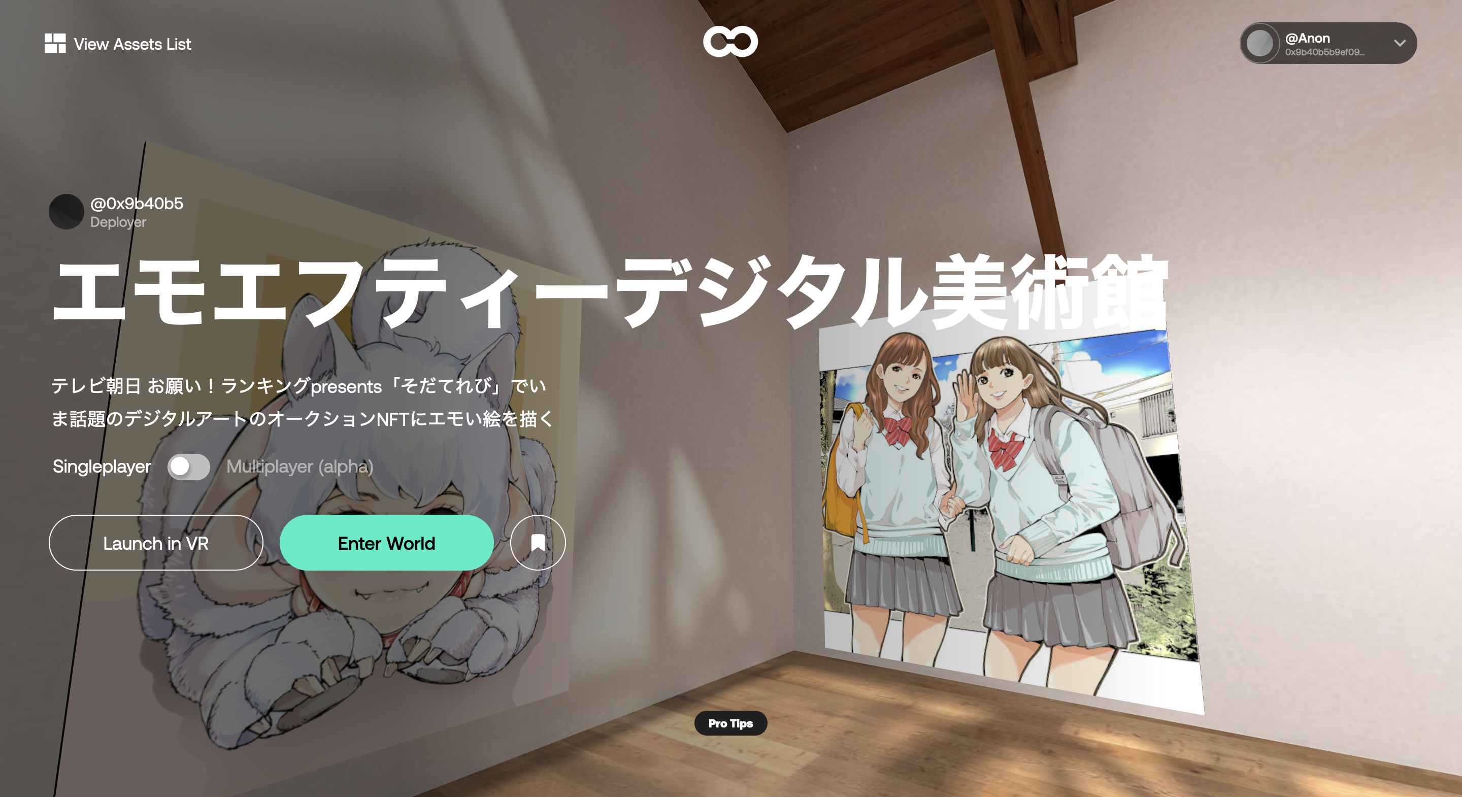 1 OnCyberにおける⽟越博幸先⽣のNFT展⽰会
