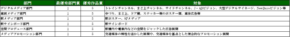 グランプリ1点、各部門より最優秀部門賞1点、優秀作品賞5点および、JR東日本賞1点の計38作品を選出します。
