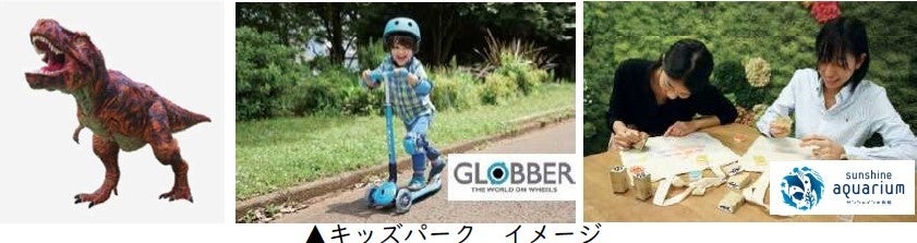 リアルな恐竜ロボットの展示と恐竜の化石を発掘するワークショップなどが楽しめる恐竜アドベンチャーや、フランス生まれのキックスクーターGLOBBER が試乗できるキックスクーターパーク、サンシャイン水族館と連携し、エコバッグや巾着づくりなどのワークショップ等を実施します。屋内では、未来のTorch Tower をマインクラフトで作るワークショップや天体望遠鏡を作るワークショップも開催。