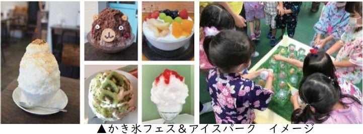 浦和かき氷 蔦、霧原、nice&warm、HACHIKU×雪見堂、たい焼きなみへいの5つの有名かき氷店が広場に集合。巨大氷を溶かしておもちゃを取り出すお子様向けの氷遊びやスノーマシンで雪を降らせるコンテンツも実施。瀬戸内国際芸術祭のVR 体験イベントも実施。
