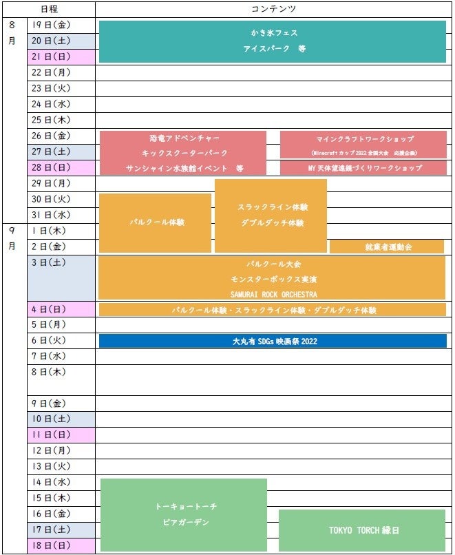 TOKYO TORCH Parkで思いっきり夏を楽しもう! 期間:2022年8月19日(金)~9月18日(日) / 場所:TOKYO TORCH Park